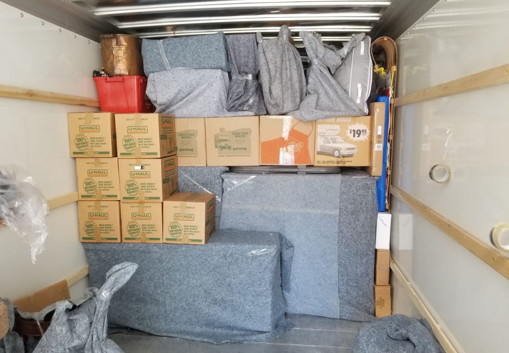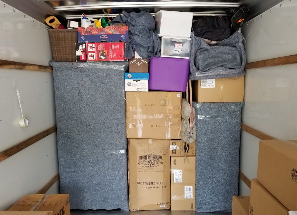 Basically, things should look like they are packed tight, all square, neat and orderly, with no room to shift around, and no space between things. All furniture surfaces should be blanket (pad) wrapped. Where possible, base heavy furniture goes on the floor, heavier boxes go above that, lighter boxes go above that, and the least stackable things go on top. Nothing is leaning at angles.