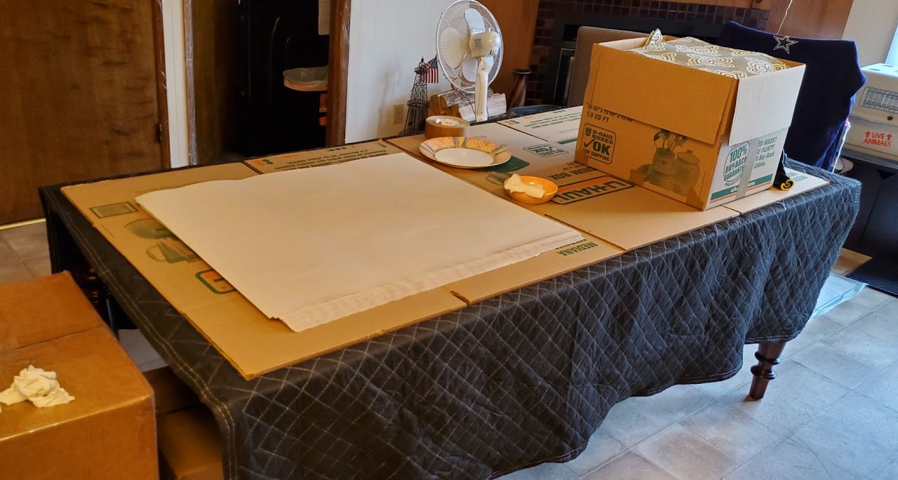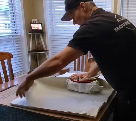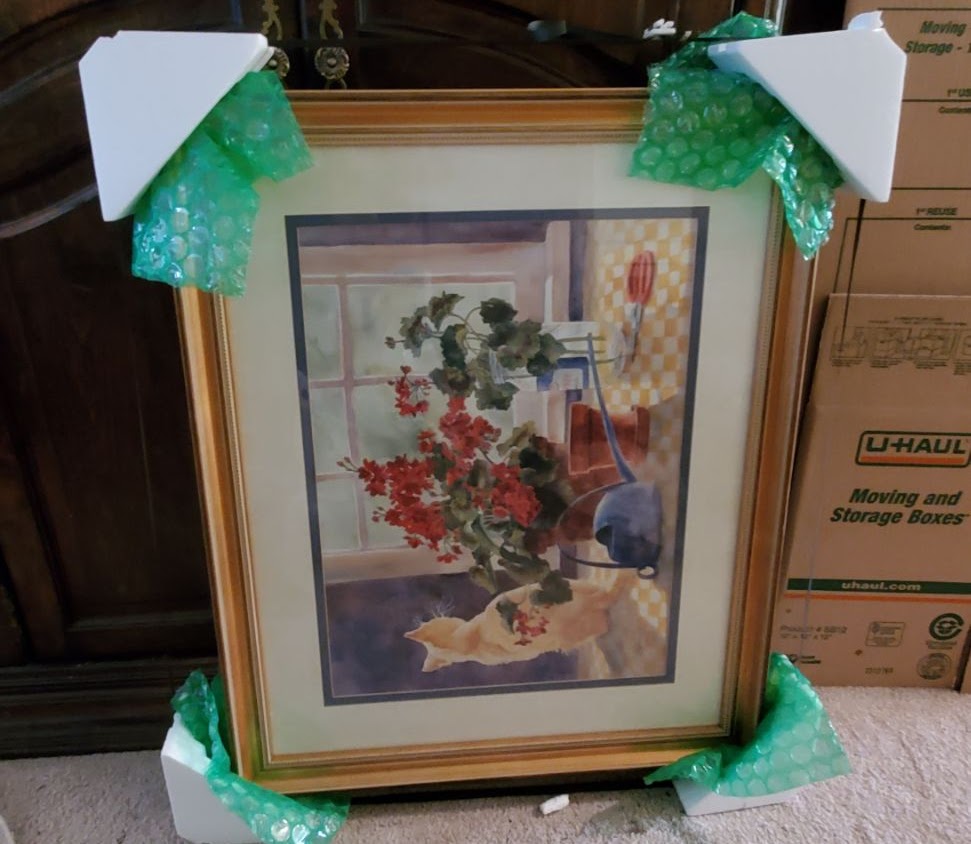 For pictures that are too big to go in large moving boxes, the moving crew can blanket-wrap them and place them frame on frame, in descending size order, all on a folded up blanket in the “mom’s attic” . It’s not the safest way, but it is “pretty” safe with only extremely rare damage ever occurring. It does, however, use up more crew-time to do this.