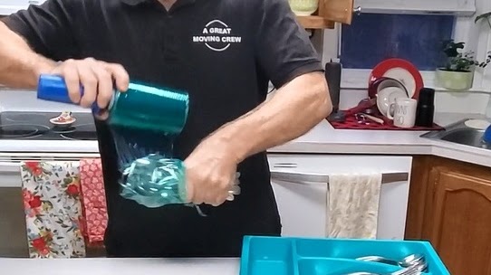 It’s a higher-end job if you plastic-wrap bundles of silverware together, to prevent any rubbing or scratching.