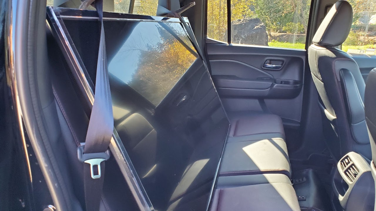 If your move situation allows it, it can save time and expense to put a TV in a passenger car, using the seatbelt like this, but it’s a little more risky.