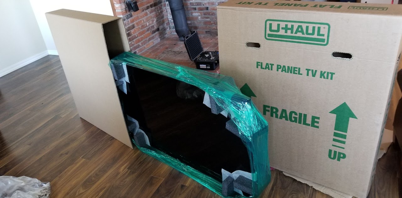 For TV’s, it’s best to use a TV box because it has spacer foam corners that create an air gap to prevent pressure against the screen.