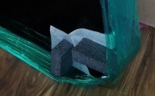 You can add a soft velvety dish sleeve between the foam corners and the TV screen, to prevent rub marks from these corners, especially if they are Styrofoam corners. Bubble wrap works for this, but is not quite as good at protecting the screen.