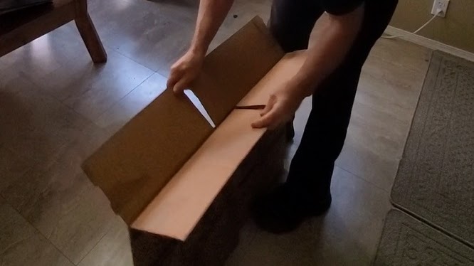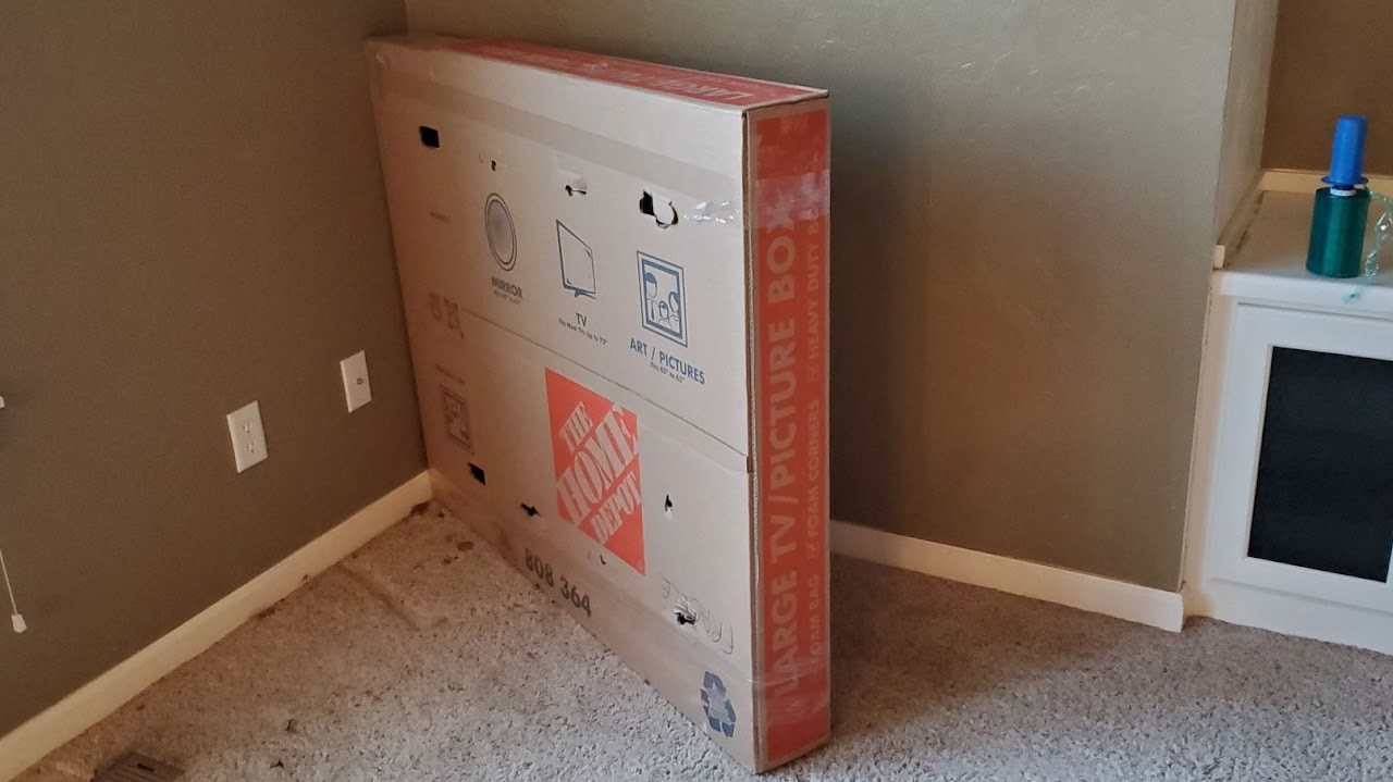 Slide the two box-halves together, tape it, and tuck it somewhere it’s not going to fall over. If it’s a plasma TV, make sure to keep it upright, and draw a huge arrow pointing upwards on the box on both sides.