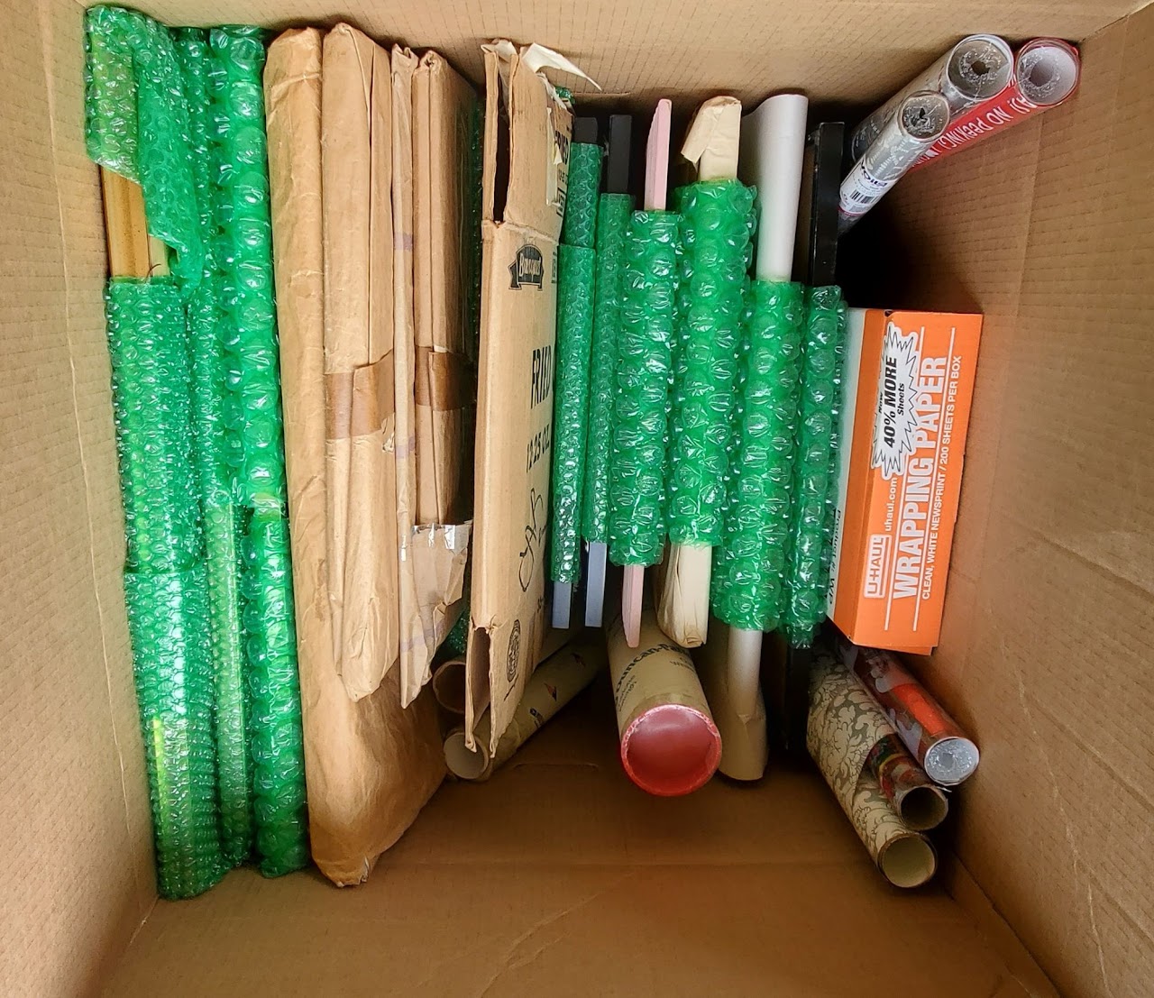 For large fragile things, place them in a box with pillows & soft things. So save soft things for this use.