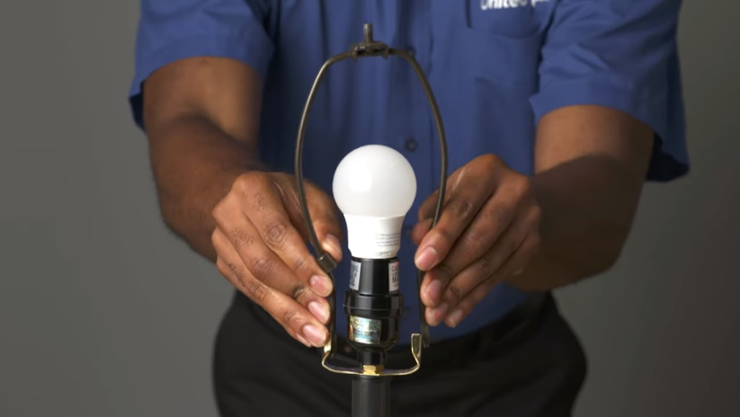First unscrew the cap and take the shade off. It’s better to never touch the fabric of the shade, only the metal.