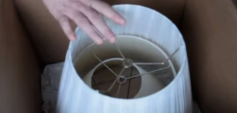 Lamp shades that don’t fit over each other get their own box, with crumpled paper on all sides, or wrapped in a blanket or coat.