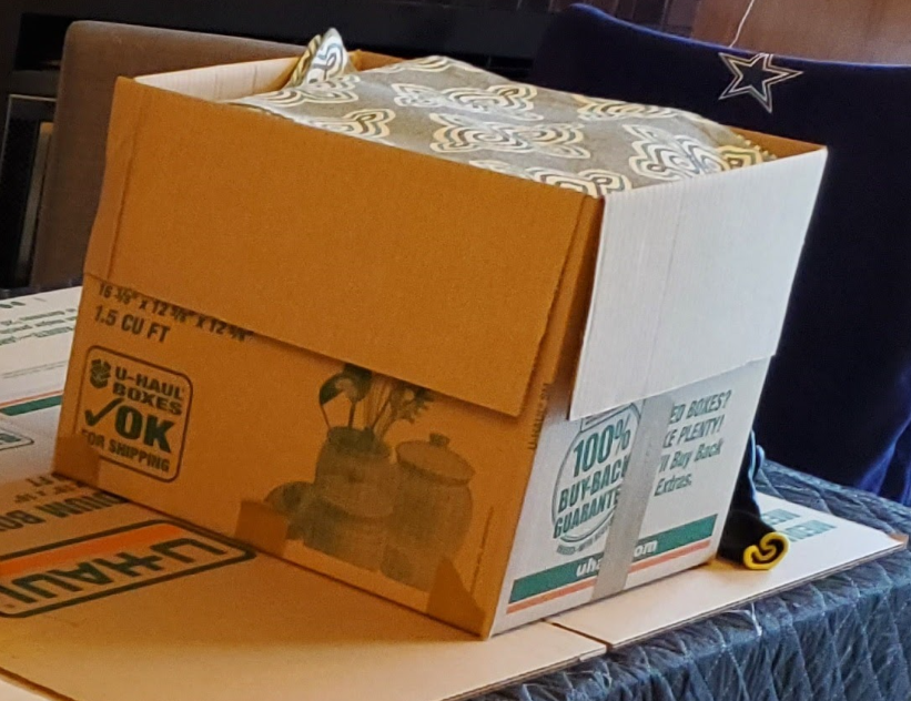Then, possibly seal it in with plastic wrap and/or blanketing to hold it all together, or leave that for the moving crew to do.